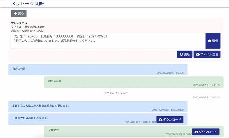 REXASS上でのチャット機能で取引先様とのやり取りが円滑になります。