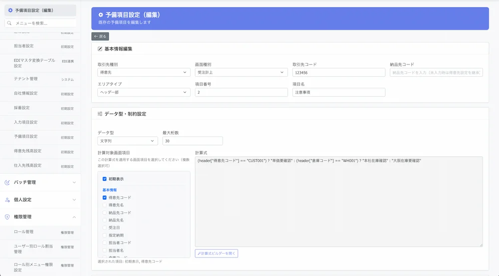 - 取引先ごとに、システムの表示項目を簡単に変更したい